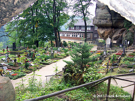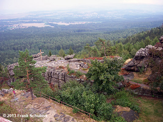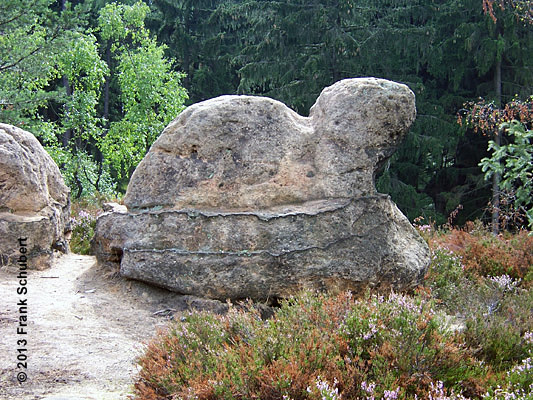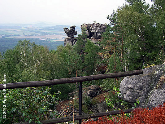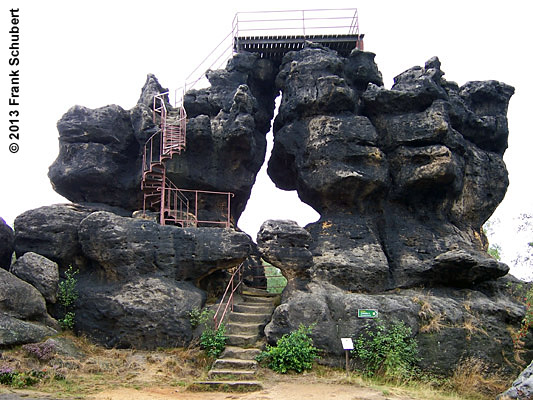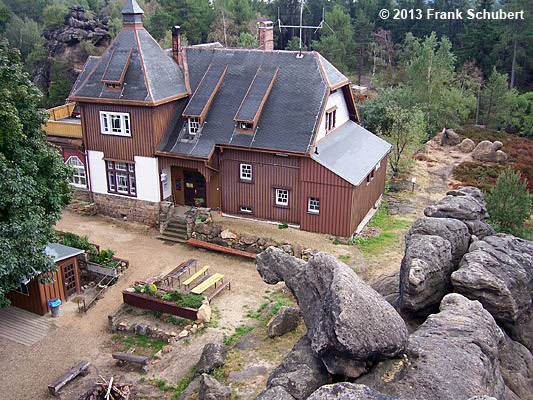 mit seiner um 1903 erbauten Baude, dem Felsentor ( Aussichtsplattform) sowie verschiedenen Steinfiguren