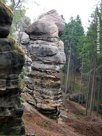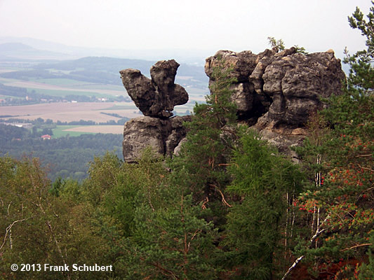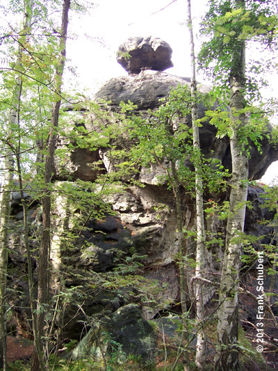 Eine der bekanntesten Felsformationen in Oybin ist der Kelchstein. In Laufe der Zeit formte Erosion
