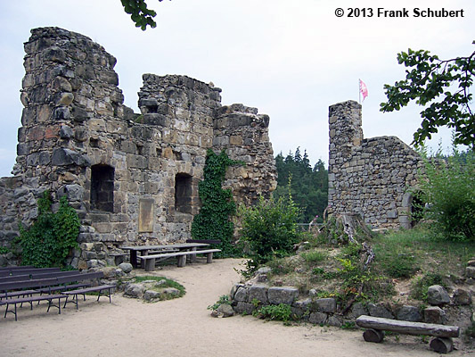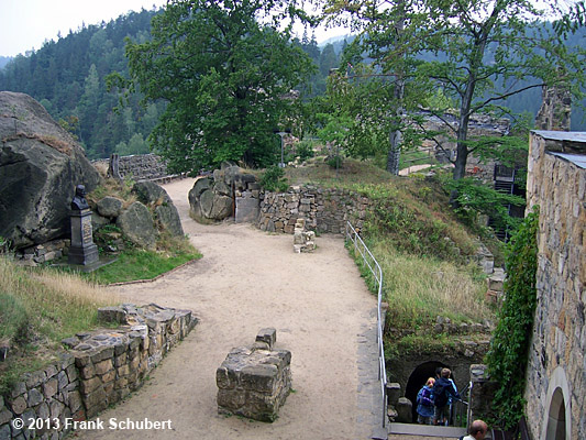 später eine Burg erbaut. Diese ist nach Jahrhunderten und diverser Bränden und Blitzeinschlägen noch